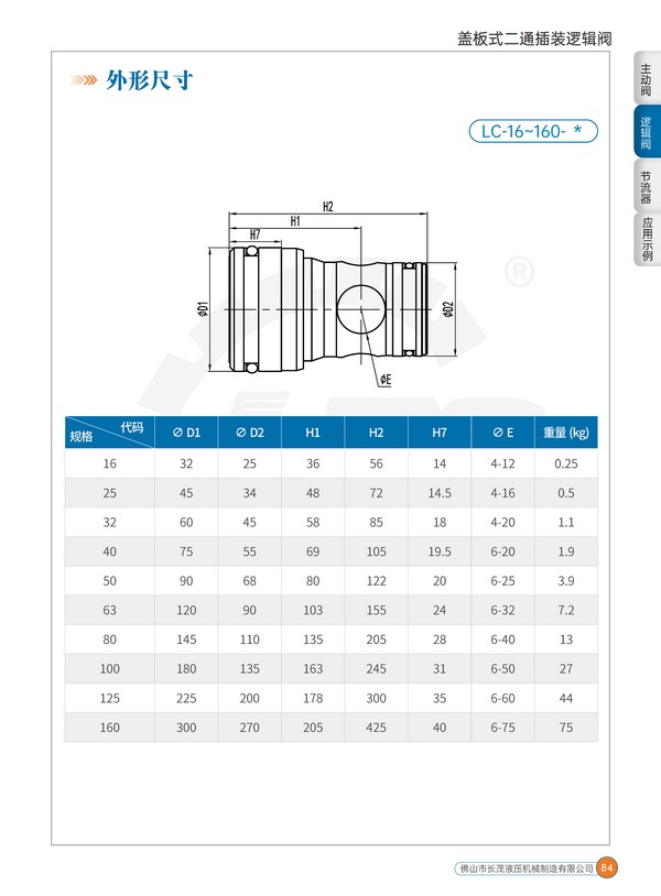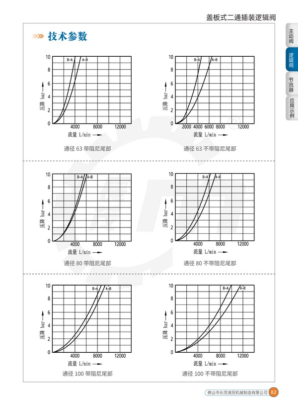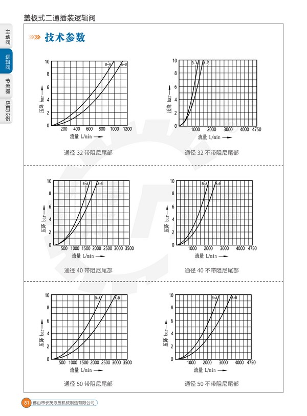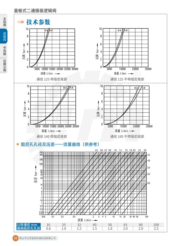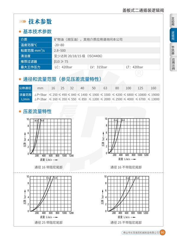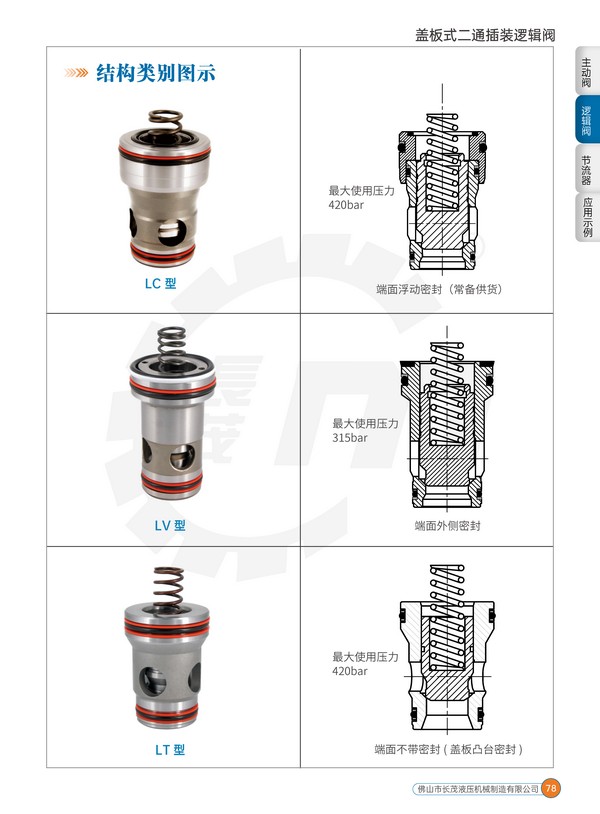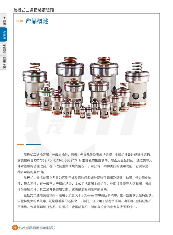 蓋板式二通插裝邏輯閥一般用于流量大于80L/min 的中高壓系統(tǒng)中,在一些要求反應特別快,流量特別大的系統(tǒng)中,更是最重要的選擇之一。該閥廣泛應用于鋁材擠壓機、油壓機、塑料成型機、壓鑄機、金屬剪切和打包機、軋鋼機、金屬成型機、船舶等設備的中大型液壓系統(tǒng)中。